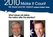 '2010 Make it Count': Kevin Rudd and Tony Abbott to speak live to Christians across the nation