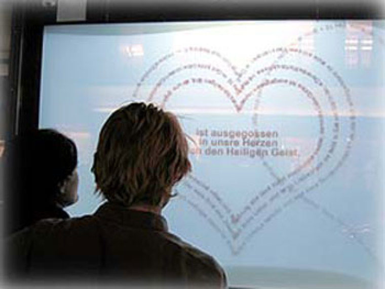 Using computer-controlled multicoloured lighting, the display offers a "personalised" Scripture quotation to each person who comes within range of special cameras. Those who linger in front of the display will experience how the text seems to react directly to them and will see further quotations connected with the same topic.