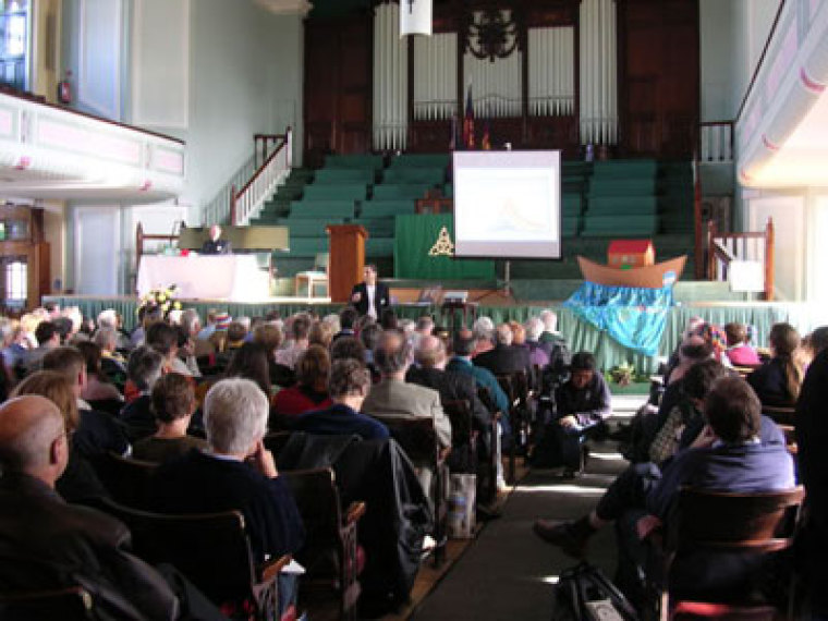 In the morning, around 200 delegates gathered at Methodist Central Hall to attend a conference. Keynote speeches were given by prominent experts of environmental protection, including Christian meteorologist Sir John Houghton FRS, Aubrey Meyer of the Global Commons Institute, Deputy Director-General of Churches Together in Britain and Ireland (CTBI) John Cridland, and Director of Global Action Plan Trewin Restorick. They addressed the current global crisis as well as the possible solutions.