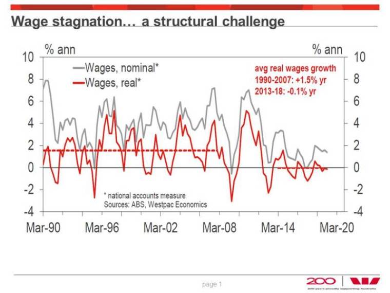 Troy Hancock highlighted many aspects of the economy as it is today, one of which has been the levelling of the wage and salary levels for a number of years. In effect this means that the spending capacity within the nation has not been a growth factor, and therefore the graph illustrated this situation for the economy. This affects consumer confidence.