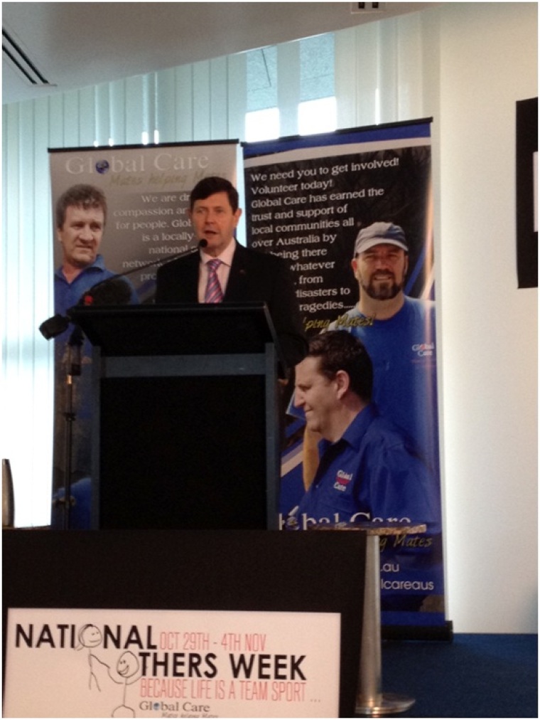 "Global Care's motto is 'mates helping mates', and during this very special week, I want to encourage people everywhere to look beyond their own four walls, and just 'be there' for someone else – to be a 'mate' to them.