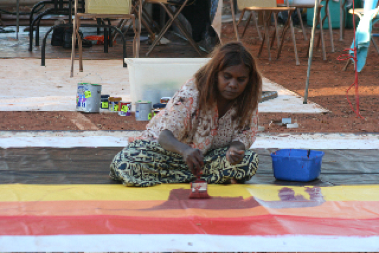 The pilgrimage is also very important for the Mutitjulu community. Members of the community have been preparing a banner for the pilgrim's arrival.