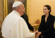 Hollywood actress Angelina Jolie met Pope Francis yesterday after a screening at the Vatican of her film \'Unbroken\'.