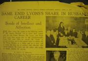 One article that I found in my late mother's archives was from the Sydney Morning Herald dated April 17th, 1939, entitled "Dame Enid Lyons's share in husband's career: Bond of Intellect and Affection."