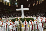 The Catholic Church in Sydney has conducted a Confirmation ceremony en masse at the Superdome to rival a Hillsong-style evangelical revival meeting, on 22 May 2005.