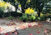The trees in our street declare it's autumn in the natural world, their green leaves metamorphosing to shades of brown and yellow and orange, separating from branches, falling, crumbling, becoming a stunning multi-coloured mosaic on the earth below.