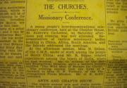 The short article read as follows: "A young people's interdenominational missionary conference, held at the Chapter House, on Saturday afternoon and evening, was well attended. Representatives of various missionary bodies working in China, Africa, South America and Islands addressed the meetings.
