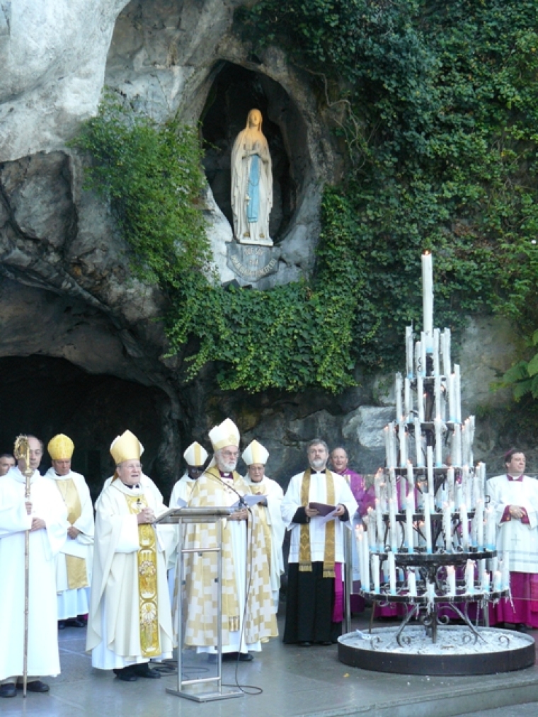|PIC1|Seven bishops and some 60 priests joined in a concelebrated Anglican Eucharist in the Upper Basilica of the main church. The Anglican group has had a warm welcome by shrine officials and the pilgrimage is listed in the special shrine Jubilee programme for 2008. The Archbishop preached at the International Mass, with Cardinal Kaspar of the Vatican's Pontifical Council for Christian Unity as the celebrant.The day marks the feast of Our Lady of Walsingham, the title given to Mary at the Anglican Shrine in the tiny village of Walsinghan, Norfolk, England where Anglicans gather in the thousands each May.