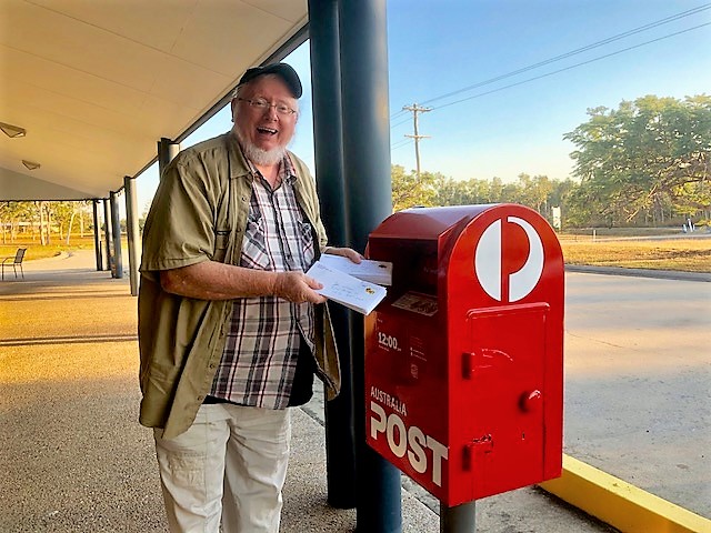 Photo - Mark Tronson posting the monthly newsletter at Midge Point PO