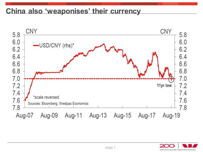 The China – USA trade issues were raised as Australia has such a focus on trade with China. The Chinese have effectively manipulated (weaponised) the value of their currency which affects every other trading nation, including Australia.