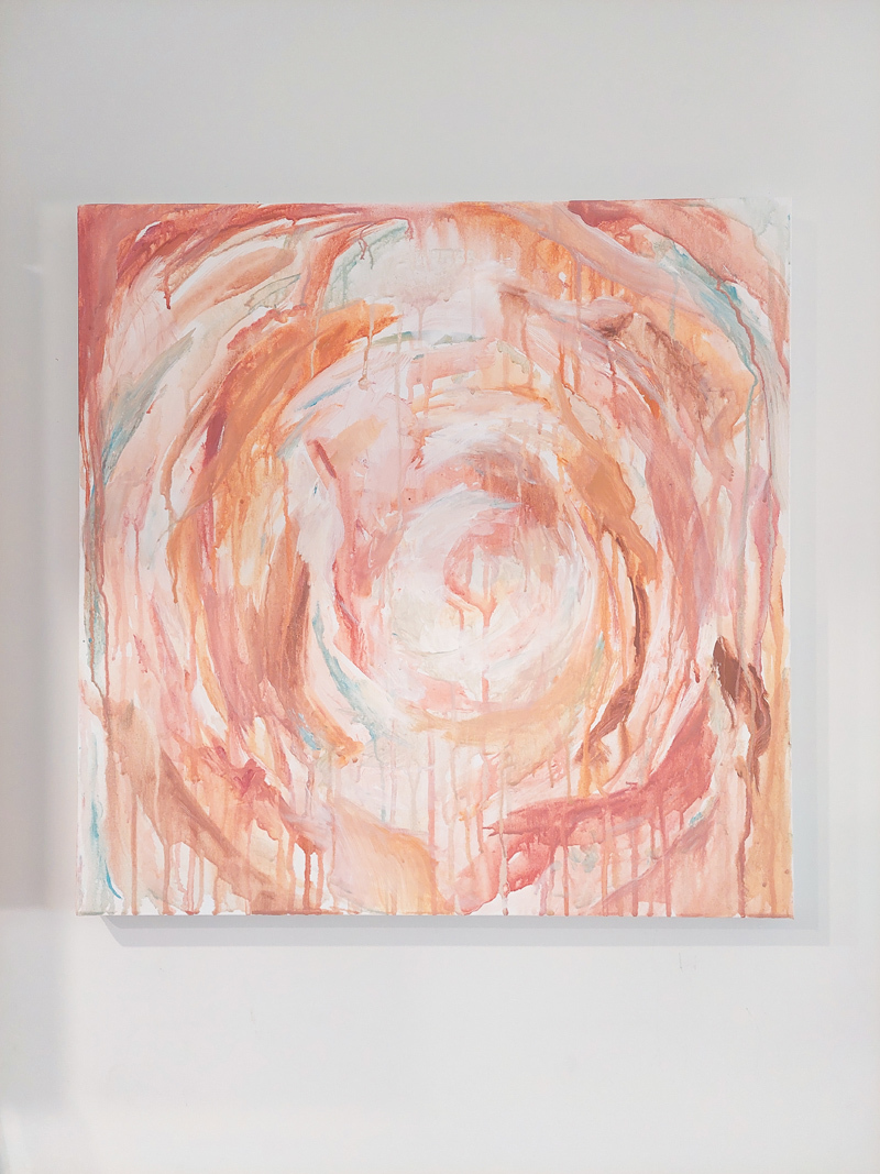 In a moment of worship, I began this piece; meditating on the blood of Jesus Christ as our sanctification to enter the throne room. In that place and moment, in the relative quiet of my brush strokes I wondered,