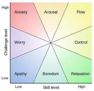 It is all about balance. Matching your skill level with your current challenge is the key. If a challenge is too hard for your current skills you will have negative emotions such as anxiety and your performance and enjoyment drop off.