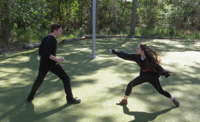 Cartia and Jesse Moore demonstrating period 'fencing' at the young writers conference