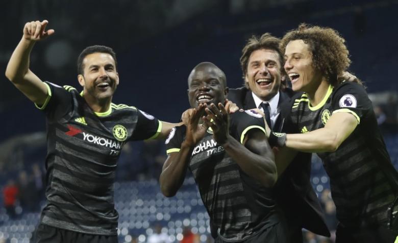 Chelsea manager Antonio Conte, Pedro, N'Golo Kante and David Luiz celebrate winning the Premier League title Action Images (Reuters / Carl Recine Livepic)