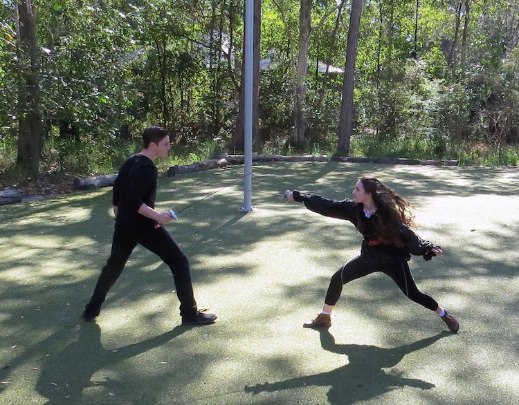Fencing demonstration by Cartia Moore and brother Jesse Moore for young writers conference