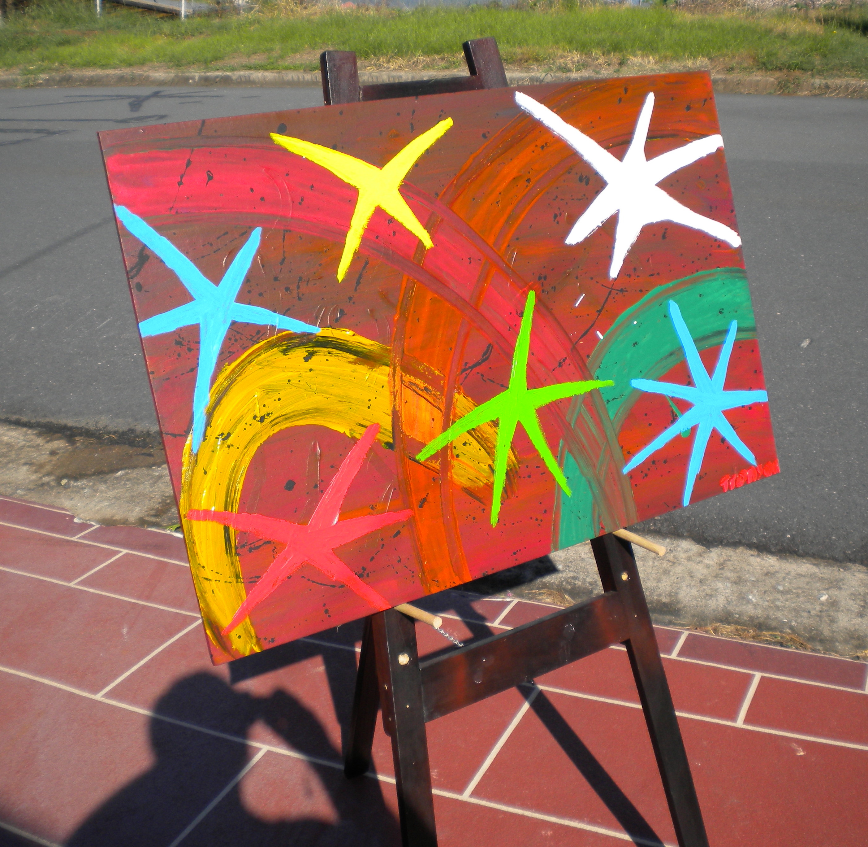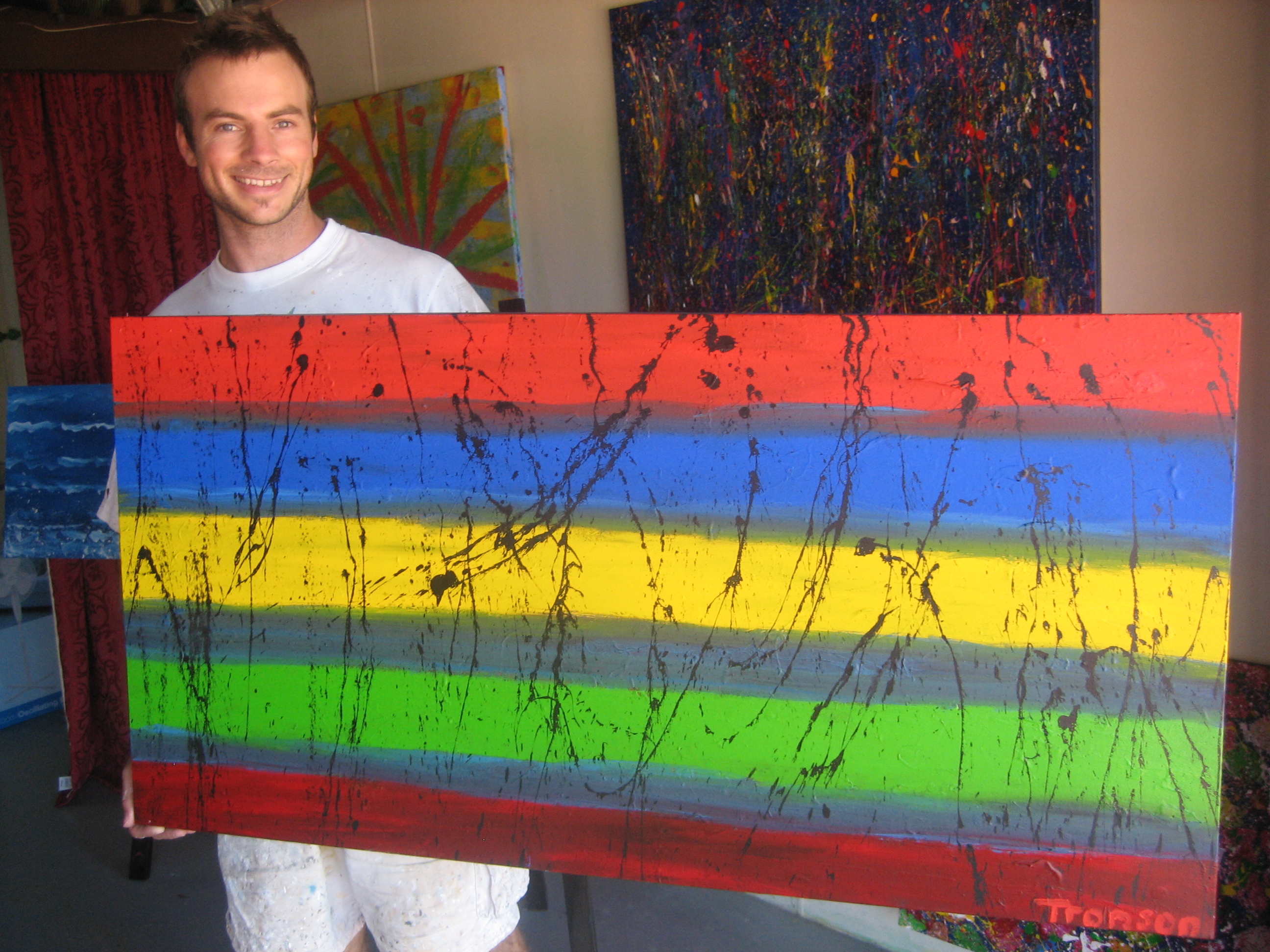 Photo - Tronson du Coudray art – Mike Renner with art work on celebrating