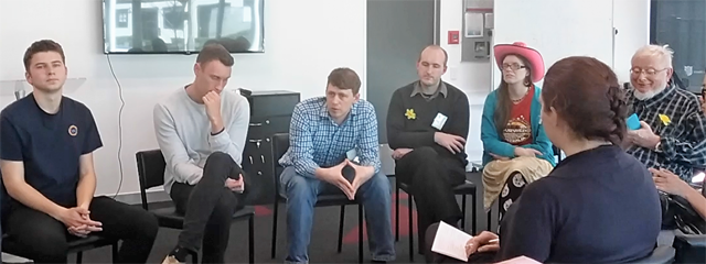 The process is much the same, after a set time of discussion, they small groups are called back and the speaker calls upon someone from each group to make some relevant comments from their small group discussion.