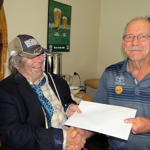 Fancy Dress – winner the 'Swagman' - Lynn Logan presented by The Point Tavern's Neil Brooks