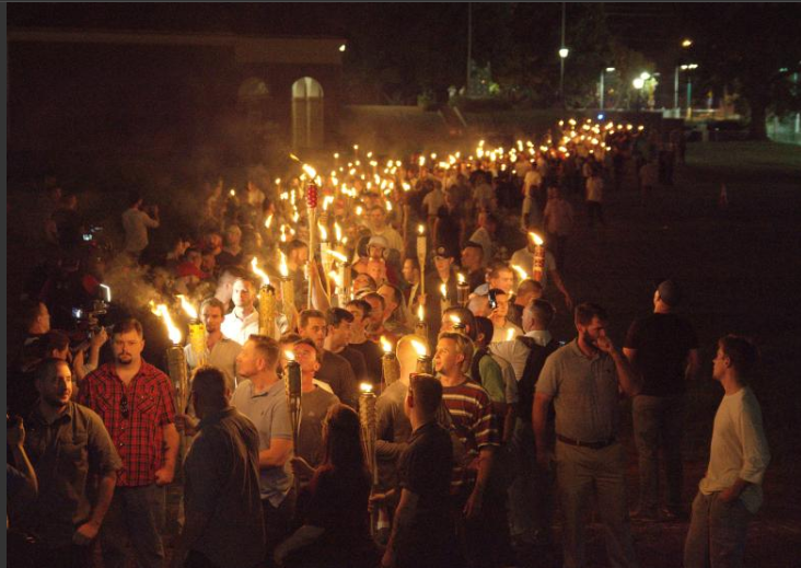 Far right demonstrators process with torches at the University of Virginia, Charlottesville (Photo: Reuters)