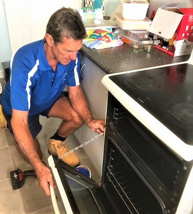 A new dining room ‘wall’ air conditioning unit, a single bed donated, veranda power points replaced, 6 new large rubber door stops, inside of the cottage repainted, oven door hinges repaired and door fitted with a chain and solar panels to reduce the electricity footprint.