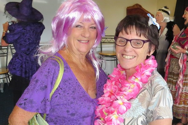 Fancy dress at Midge Point - Jill Liepertz (60's rocker) and Delma Tronson (Hawaiian girl)
