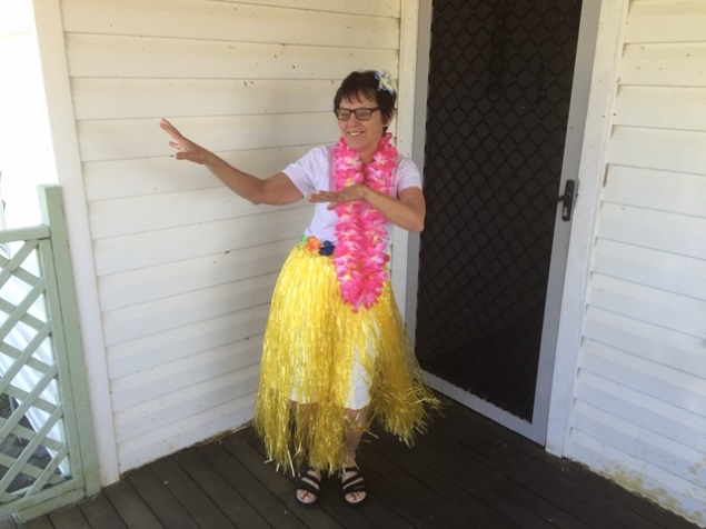 Fancy Dress - Delma Tronson rehearsing as the Hawaiian girl