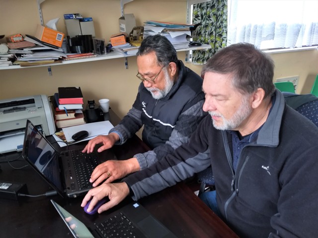 Last Wednesday, after 23 years and one month of work, head translator IoaneTeao and Bible Society Translations Director Dr Stephen Pattemore performed the final check of the final verse of the brand-new Tokelauan Bible translation.