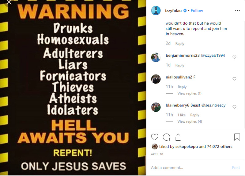 One controversy emanating from this imbalance is the case of Israel Folau who is set to lose his job as a professional rugby player for posting an offensive and unpopular opinion. A scroll through a few months of his Instagram feed reveals that about 50% of the posts on his page is exactly the same content. He has been posting these opinions for years. So why is it now that we punish him?