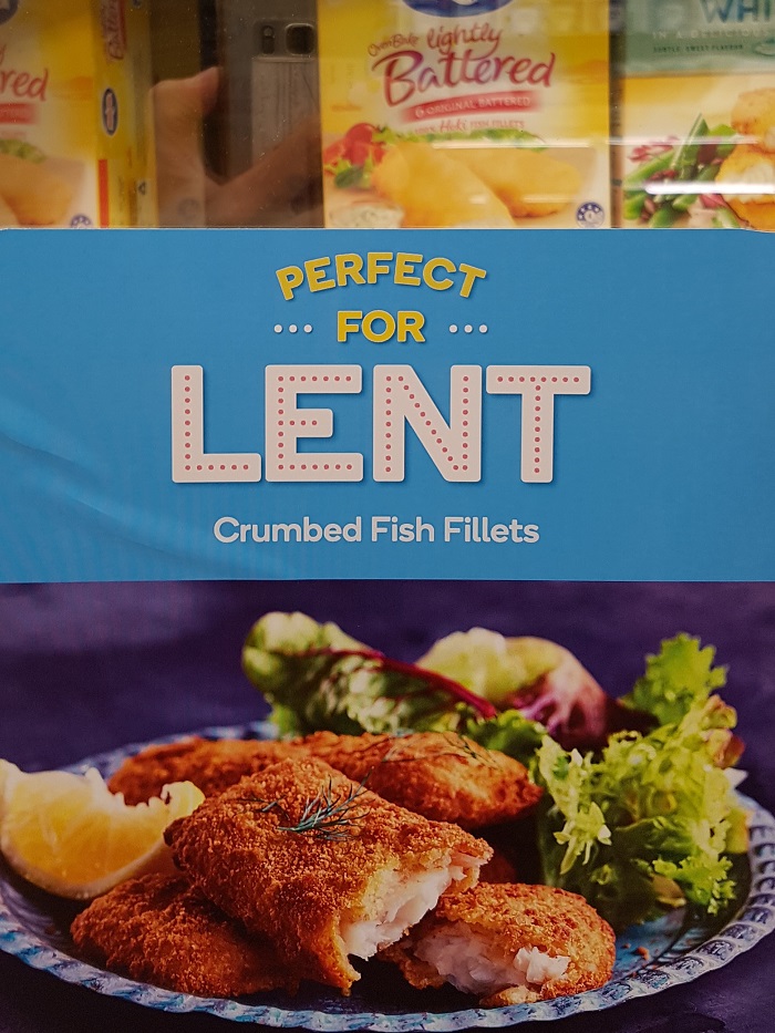 Altruistic manufacturers sell fish, albeit the same fish sold outside Lent, but with a new sticker. In addition, while I am deeply moved that these manufacturers be concerned with my repentance of sins and Jesus’ walk towards his propitious death I remain a little skeptical as to how a Christian festival became a tool to sell me stuff.