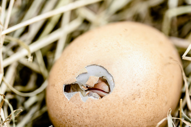 Toby thought because the chick was getting crowded in. Maybe it was getting hungry? There was now no food (yolk) left inside the shell to cause the chick to outgrow it.