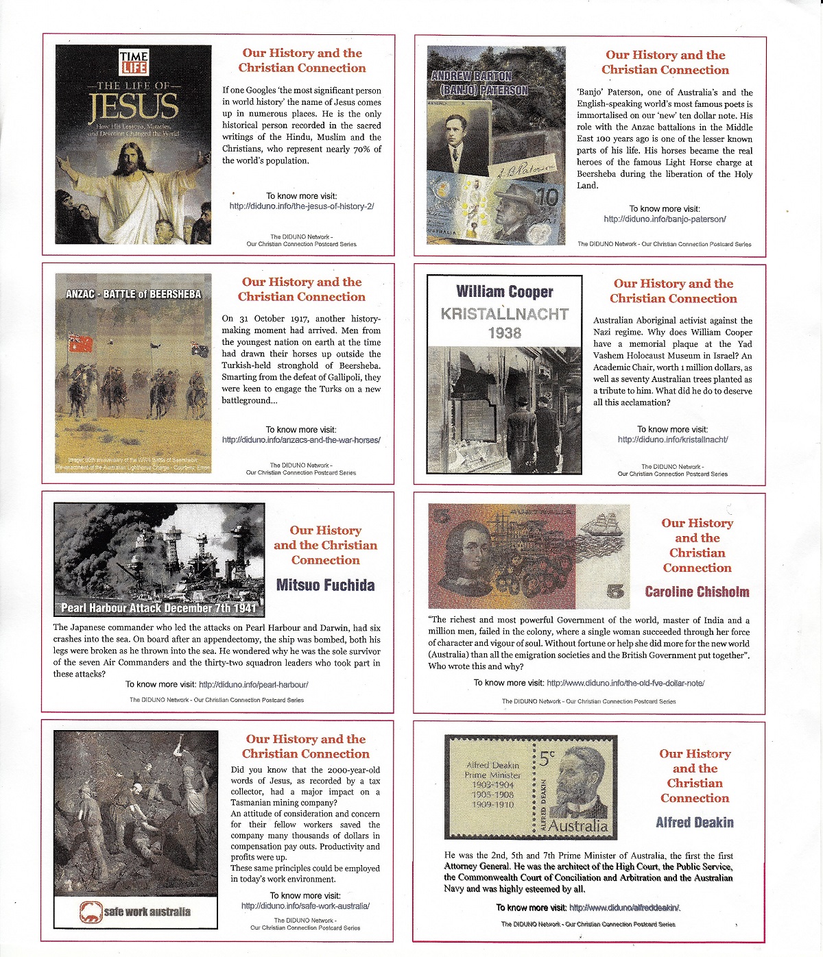 One of the remarkable ministries of Diduno are their online articles of mainly earlier Australian Christians celebrating Australia's heritage.