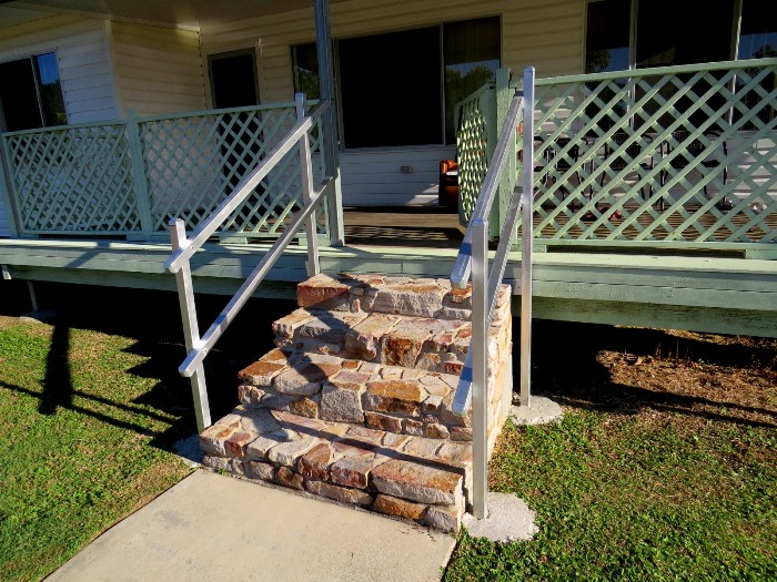 These stone steps were constructed by a sub-contractor and the railings by another
