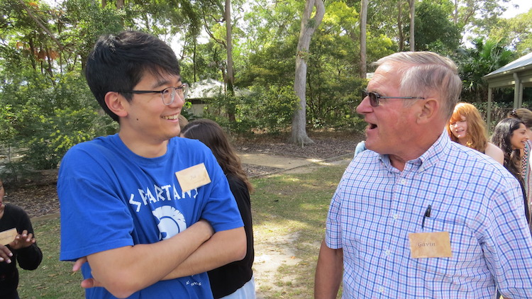 Young writer Jia Pan Xaio (Sydney) with Australian Panellist Gavin Lawrie (a retired barrister)