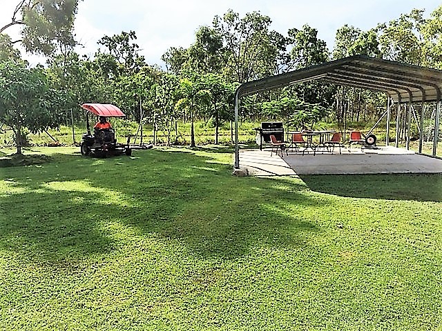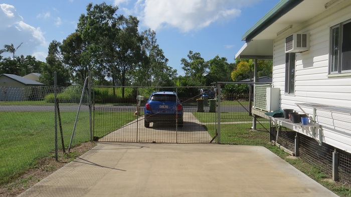 It cottage looked totally sealed – no windows were broken – there is a large veranda at the front protecting the front door and a huge patio at the back protecting the back door. One side of the cottage is a large solid shed (one day will be a house). The rear was protected in some measure by thick bush land of Laguna Quays Resort. The right hand side has three vacant blocks to double storey huge shed.