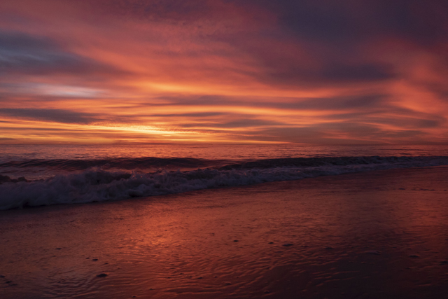 I’ve come to the beach to find a miracle…and watch the sunset. But thick cloud spreads over the horizon, shutting out the sunlight, so my expectation for a colour-filled evening is low.